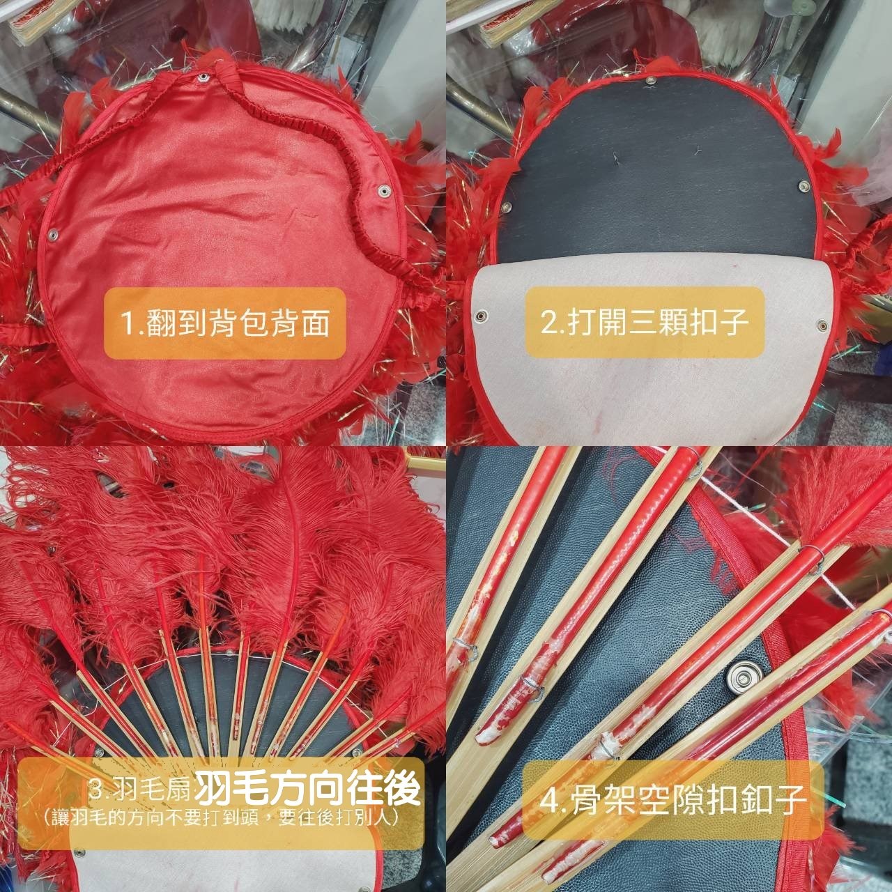 比基尼樣式/羽毛扇安裝在背包的固定方法/男生反串毛毛裙(以紅色款式示範)